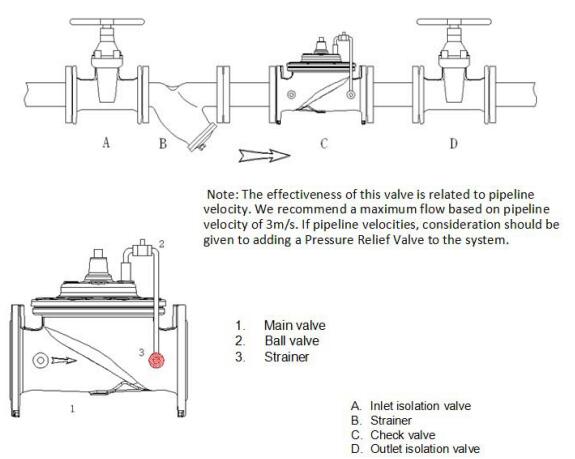 When the flow rate of the piping system is too large, a relief valve is recommended for better prevention of water hammer.