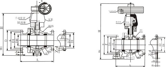 公稱壓力 | 公稱直徑DN(mm) | D | D1 | K | L | F | F1 | C | Z-d | H | H1 |